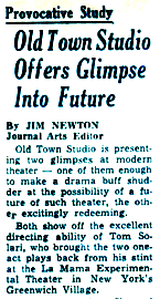 ![]() Spotlighted in the Newsweek article were new playwrights Sam Shepard and Jean-Claude Van Itallie. Sam Shepard would later make his mark as a popular Hollywood film actor. |